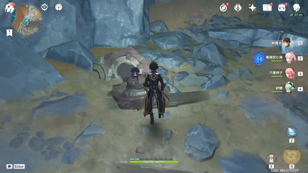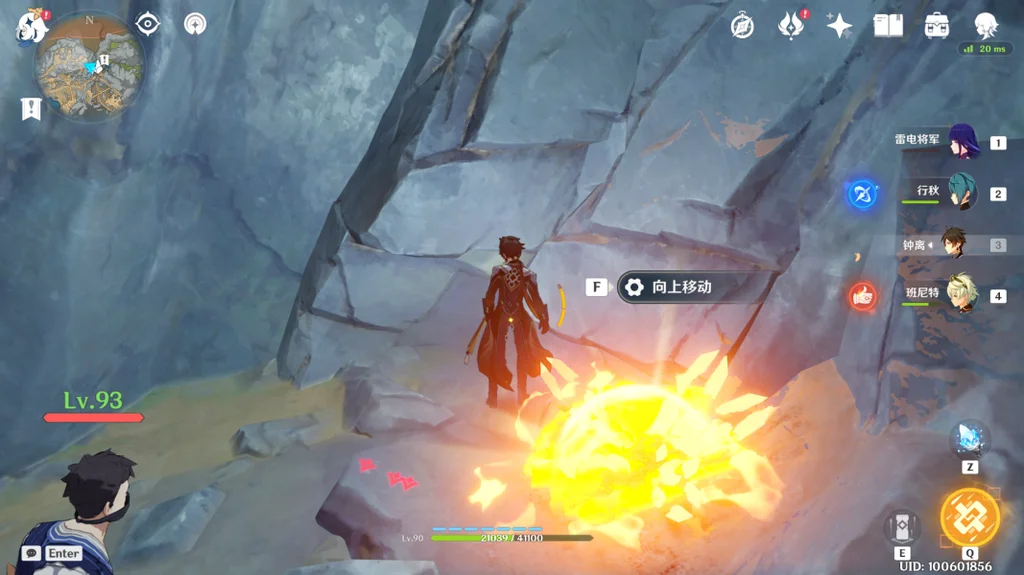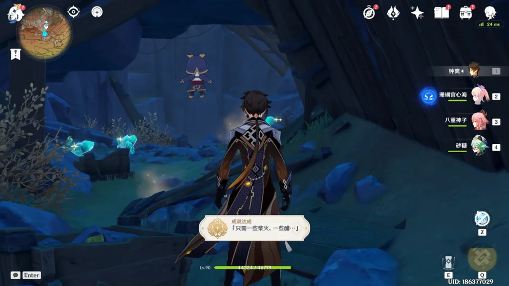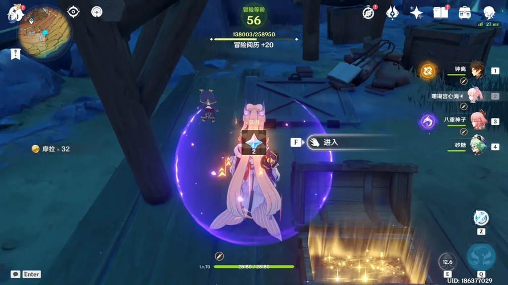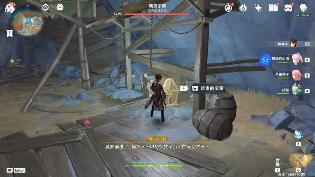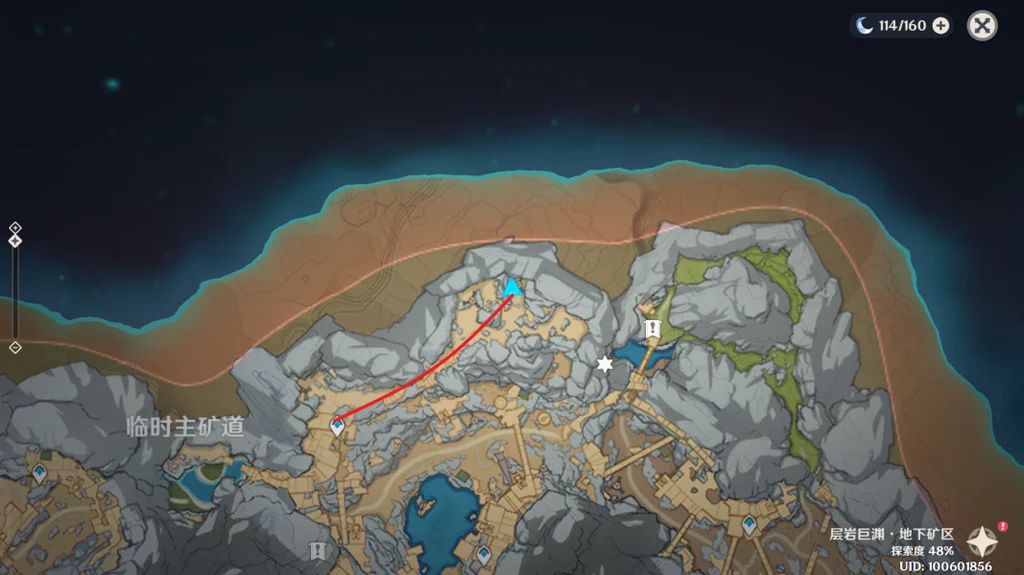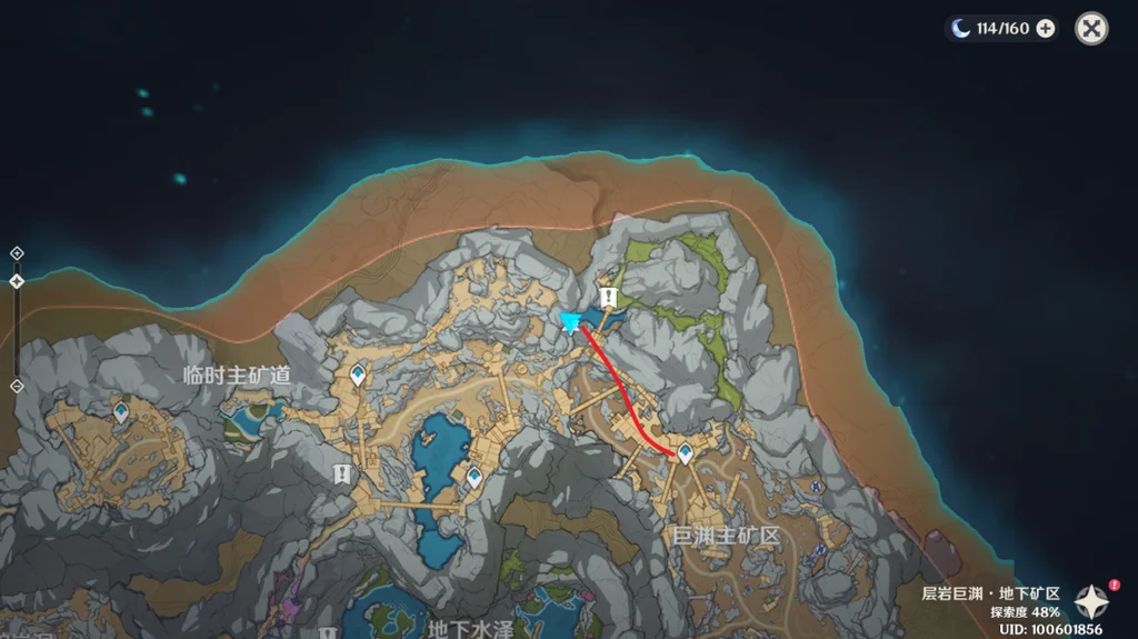 从传送点来到图示位置,会看到一个漩涡状的东西,靠近后可以交互,交互后会进入层岩巨渊上层矿区的一个铁门内,里面有个华丽的宝箱,旁边有个机关,开门后会获得成就【只需一些柴火、一些醋多···】