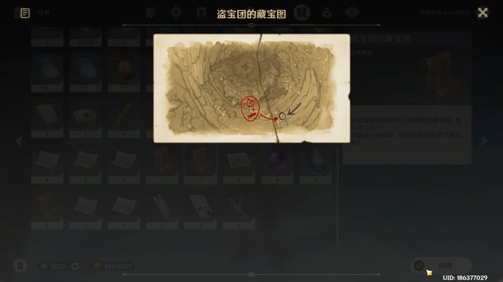 在两处地方分别获得藏宝图碎片后,它们会合二为一变成一张藏宝图的碎片,阅读后可以看到图示地点。