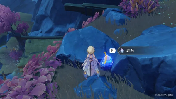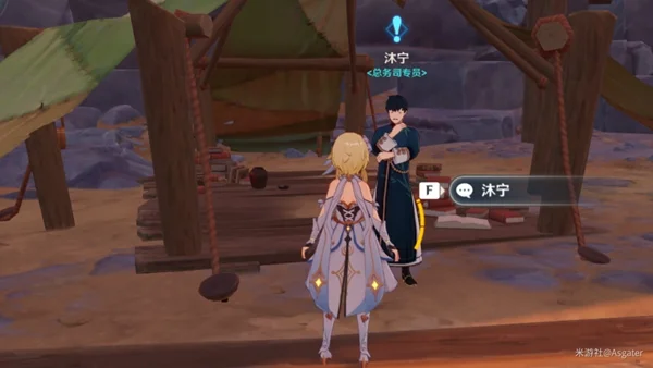 在层岩巨渊东侧的锚点处,按照下图标记找到NPC沐宁,然后对话接取任务,然后寻找老石并交付于他即可(要3块)