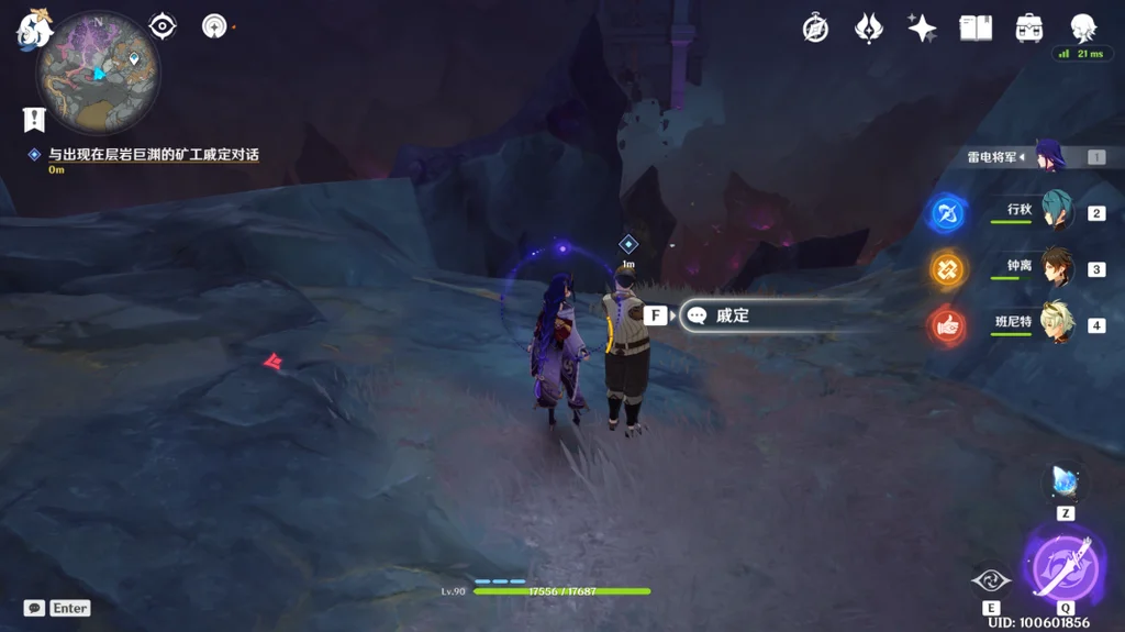 第一种:完成藏石者言任务后(需要交付所有的老石),与沐宁对话触发任务。任务触发后我们需要前往层岩巨渊·地下矿区找到戚定。