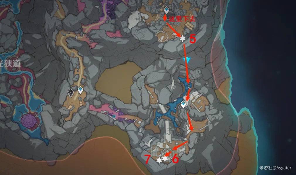 8号:选择从荧光狭道处的锚点径直朝着西侧的通道进入,因为只有一条道路所以很轻易就能找到(如下图)