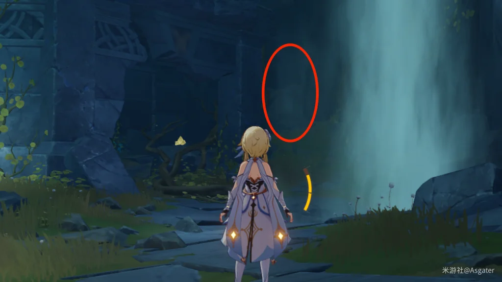 3号:从图中锚点朝西侧行进,在该处瀑布的左侧的建筑内(如下图)