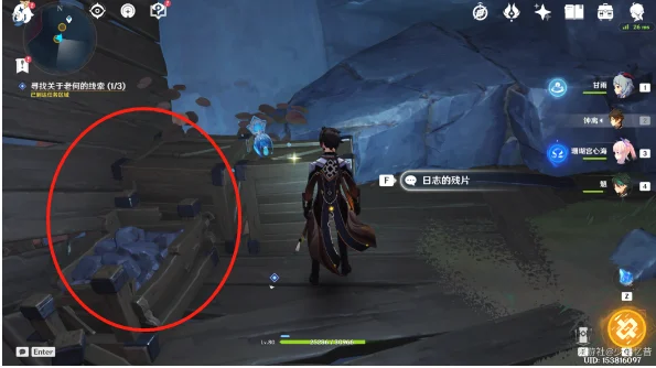 1、不少人都觉得这个线索比较难找,有些人在因为这个线索在砍石头。其实这个线索就是在上图线索的附近。我们往临时主矿道方向前进,线索就在道路上,切勿爬山。
