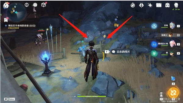 2、路过,遇到一个帐篷的时候,我们在周围搜查一下,就能快速的发现到第二个线索【日志残片】了。