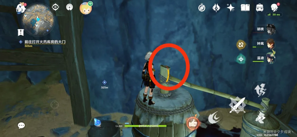 但是要注意,这个木桶里面有炸药,击碎后角色如果没有护盾保护,会被击飞(所以不要问我为什么我的胡桃是黑色的)