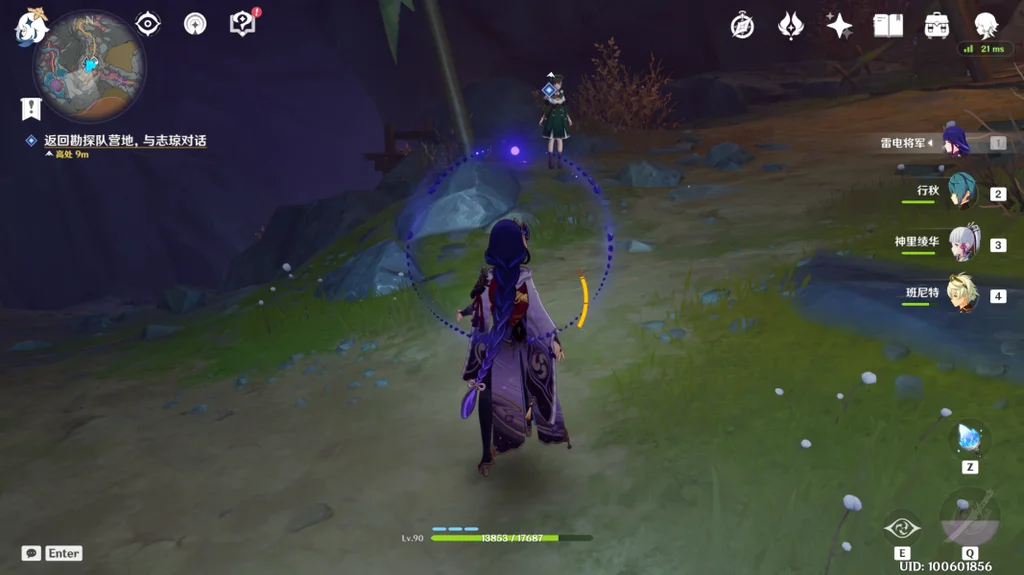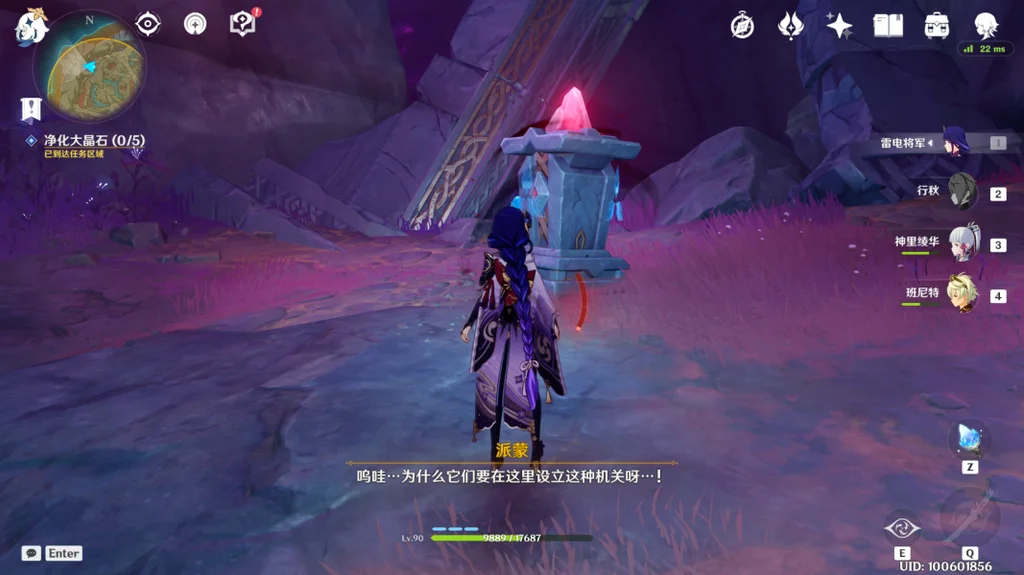 6、净化完五处大晶石后击打净化后的大晶石,然后需要与遗迹巨蛇打一架,打到一半夜兰会出现帮助我们击败遗迹巨蛇