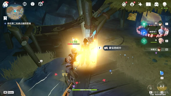打开背包,阅读道具「盗宝团的藏宝图」,可以知道宝藏入口的点位,下图为具体点位。