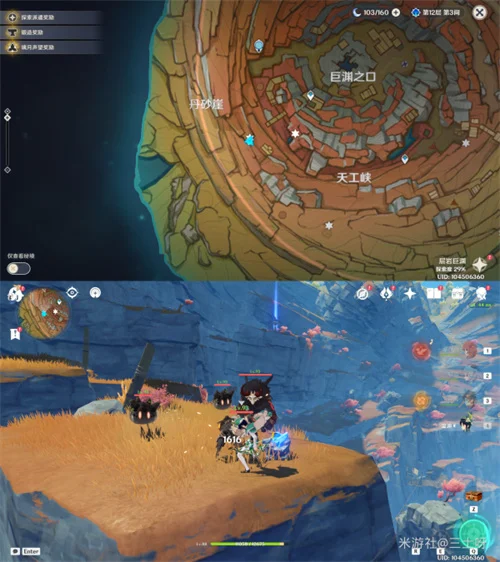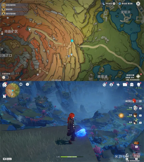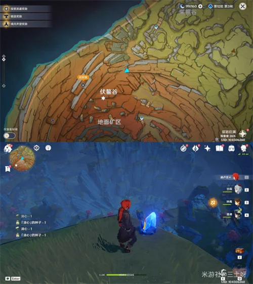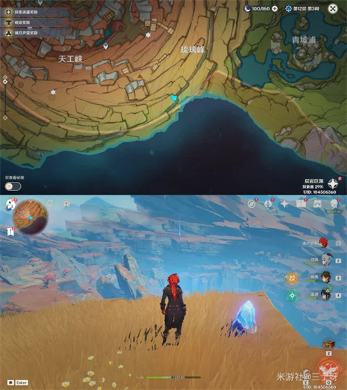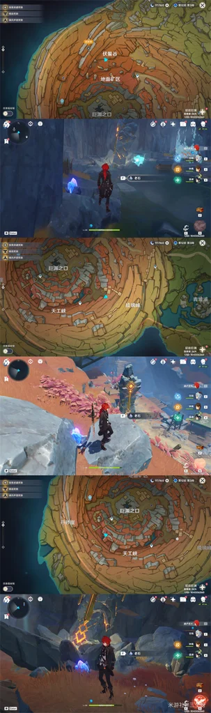 其中三个在磐键旁边(绿圈),剩下四个都在悬崖上(红圈),按下图顺序,传送到神像那里前往一号老石,然后按逆时针一圈,沿着悬崖走,就能集齐全部老石