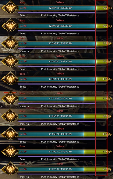 在Trixion的Training Grounds中召唤Monster(非Scarecrow),怪物会自带紫色stagger(虚弱)条。所有技能都会按照内置的stagger伤害扣它们的紫条,逐像素统计这些技能对紫条的减值,就可以对stagger伤害进行量化。