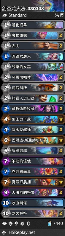 龙火法的构筑比较多样,可选的方向也很多,这套偏贪,但实战证明是可以玩的,我直播从10000打到了1500,胜率在66%左右