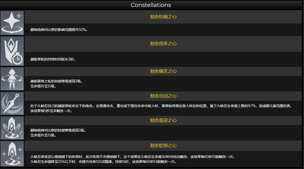 原神久岐忍技能/天赋/命之座