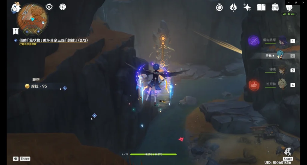 到达第三处「磐键」后可以击碎此大型碎石(里面是一个跳跃平台)快速到达上方
