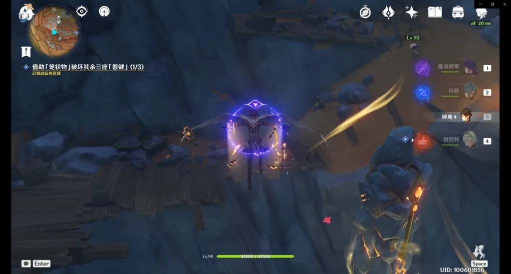 到达第三处「磐键」后可以击碎此大型碎石(里面是一个跳跃平台)快速到达上方