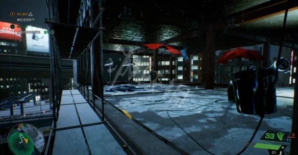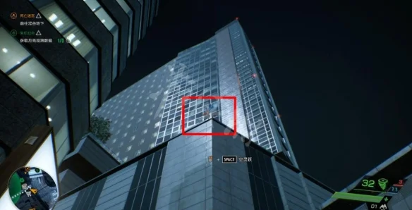来到第三个大楼下方通过楼房中央的楼梯和升降梯到达屋顶。