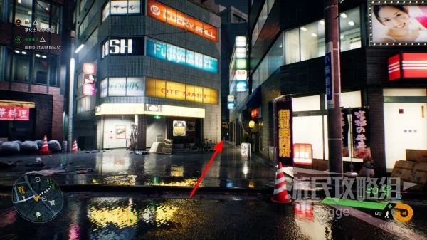 在前方死胡同中的大楼墙边可以找到风地藏像。