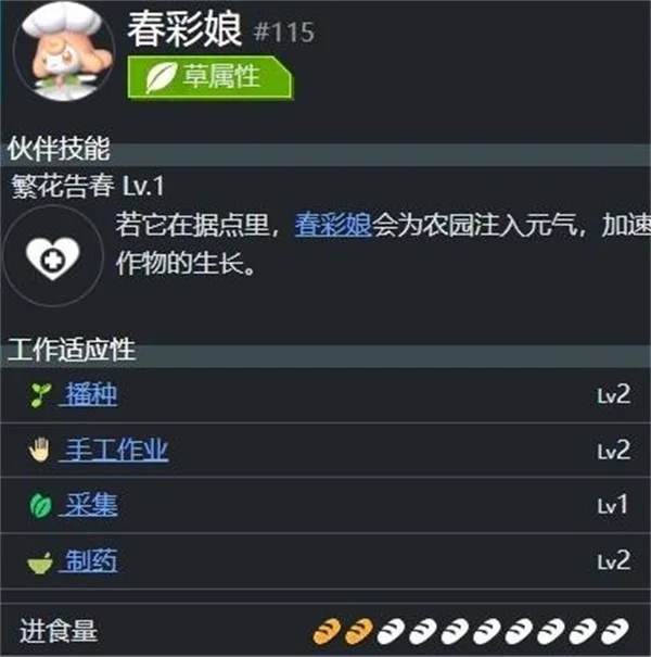 幻兽帕鲁在最近进行了一次大规模的更新,本次更新添加了一些新的帕鲁,其中有一个新帕鲁为春彩娘,部分玩家对他不是很了解,下面就为大家带来幻兽帕鲁中新帕鲁春彩娘的技能介绍及属性详解,有需要的玩家可以参考。