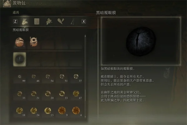 在开放世界角色扮演游戏艾尔登法环黄金树幽影中,玩家可以获取到许多物品,其中有一个为黑暗覆眼膜,该物品使用后能让装备的大卢恩带来恩惠,但是会失去所有的卢恩,部分玩家不知道如何获取,下面就为大家带来黑暗覆眼膜的获取方法,有需要的玩家可以参考。