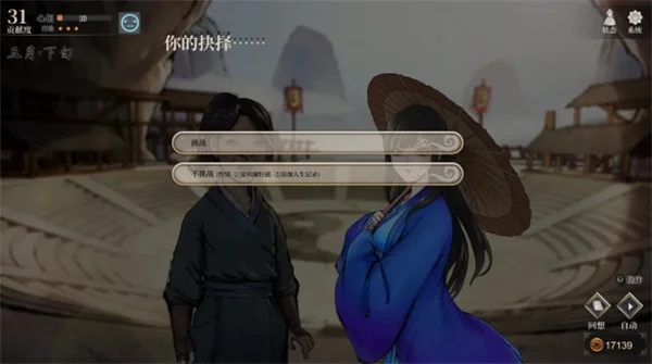 选择跟金乌上人对战,(选择小梅对战需要一定好感度,不然处于蒙面状态打输就会死)