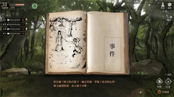 之后选择夺魄森林就可以提高夏侯兰好感度(想要在雪山事件中避免夏侯兰师傅死亡,好感度十分关键,建议在此时猛猛刷好感,顺便刷武学,不用担心之后没地方点武功,之后的南宫事件有很多时间点可以点)