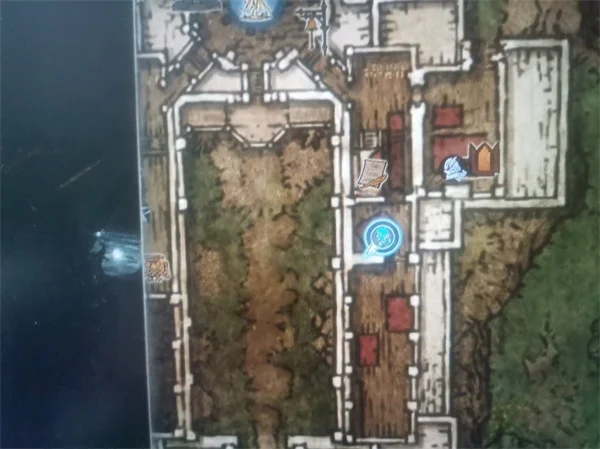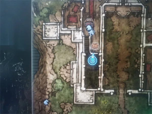 来到开始游戏的出击位置,交互选择“对铁币给予祝福”,之后来到图中位置调查,看到信上说地下室打开了
