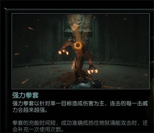 拳套的充能时间短,成功准确抵挡住地狱涌能攻击时,还会补充一次使用次数。
