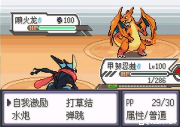 【第二阶段】:首发具甲武者迎头一击被我方守住躲过。对面气急败坏水流喷射,奈何速度不比忍蛙,我方先使出水手里剑将自身变为水系(不能直接强化,不然变成一般系扛不住水喷),直接抵抗,然后再自我激励一段。水手里剑加自我激励轮流用,强化到3段的时候基本能打出具甲武者的特性退场(除非脸黑每次手里剑都只有两下),对面蚊香泳士被强行拉入战场,被我方一发弹跳谬撒。