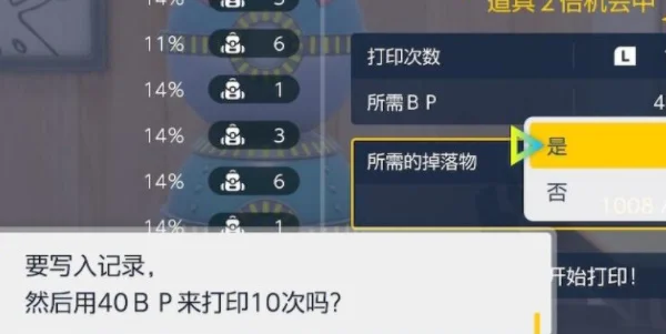 2.能打印的东西有道具、进化石、糖果。并且每次打印有1%概率触发双倍道具奖励机会(即10连计算10次1%)。每次打印有0.1%概率触发精灵球乐透奖励机会(即10连计算10次0.1%)。
