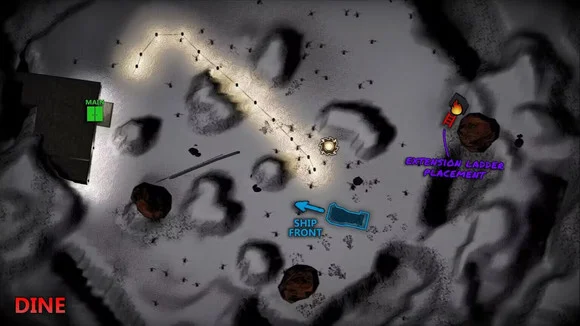 Rend 雪山洋馆 从船上到设施的步行路程很长,您可能会迷路,因此管理好您的时间以确保您不会被夜间生物抓住非常重要。在船上留下某人可能会有所帮助,庄园可能很大,因此有人指导您报废并留意时钟会非常有帮助且节省时间。而且,就像所有的卫星一样,如果你们都死得很惨,他们可以离开,以确保你们不会失去所有的废料。请记住,如果您没有对讲机,则此策略不起作用。
