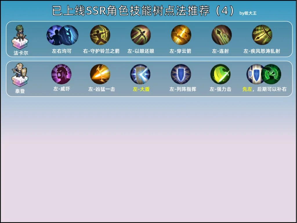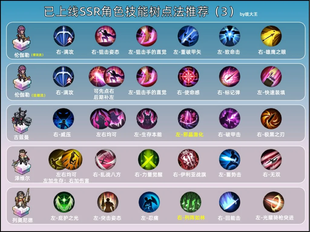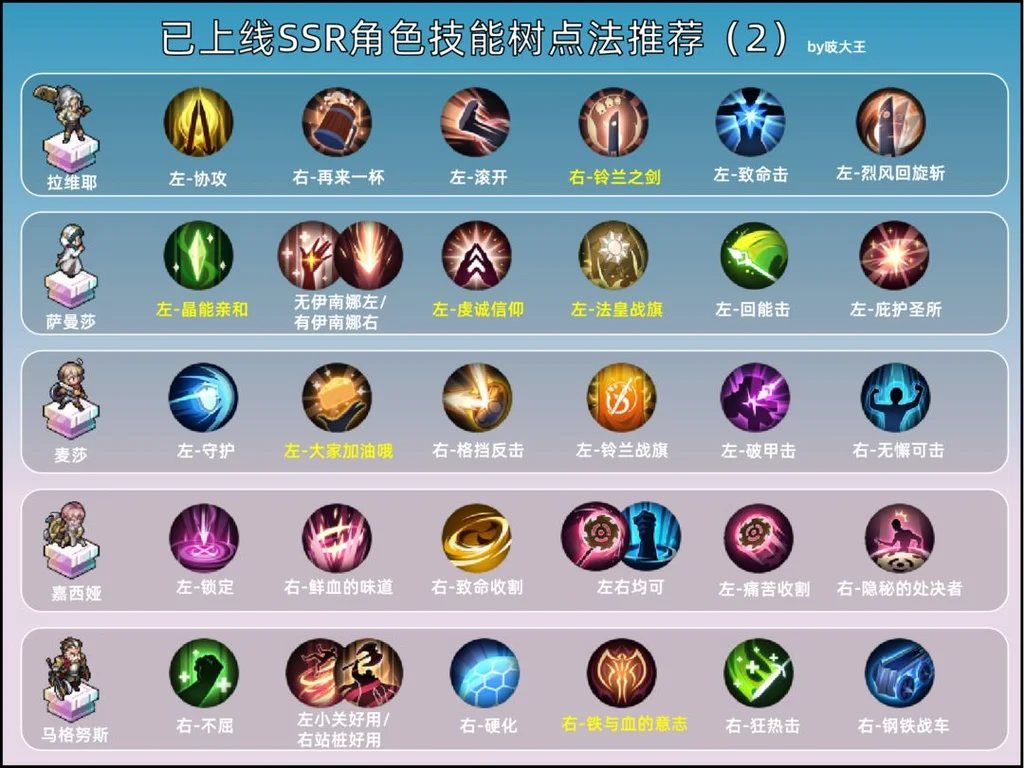 铃兰之剑公测所有SSR角色的常规技能点法,不知道如何加点的玩家可以参考上图,加点是无法重置的