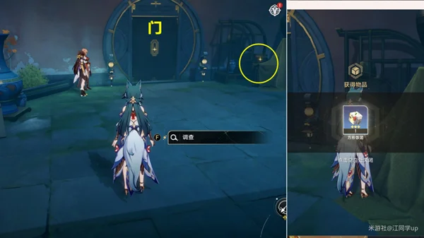 (4)进入【第1个有石碑的房间】后,先【调查】左边地上的箱子,然后提交【异色的磁铁石】,会获得打开左边门的【院门的钥匙】