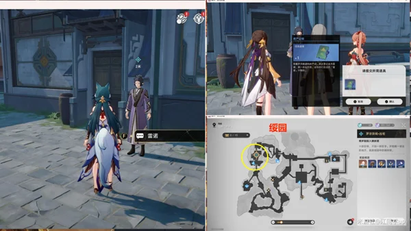 (2)然后来到【丹鼎司】下图位置任务点和【雷诺】对完话,再和【桂乃芬】对话后,进入副本