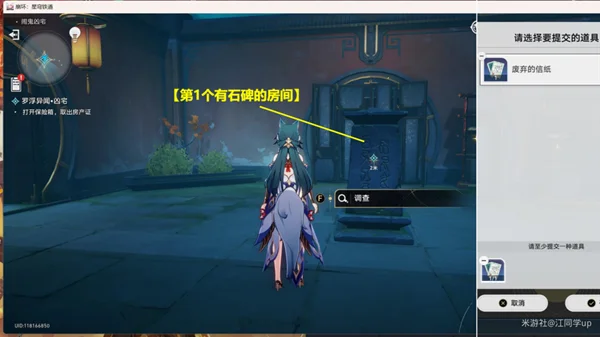 返回【集合点】,进入【账号页面】,继续接取第1个【调查委托】,会接到任务【罗浮异闻·凶宅】