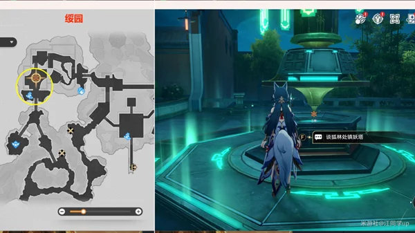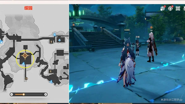 (3)然后来到【绥园】下图位置,和【景元】对话完,带着【景元】再次去打一次【彦卿】