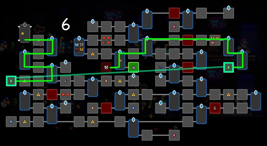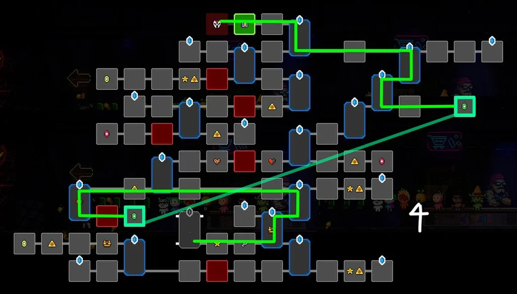 (要行走的路线使用绿线进行标记,需要使用的传送器用方框和连线进行标记)