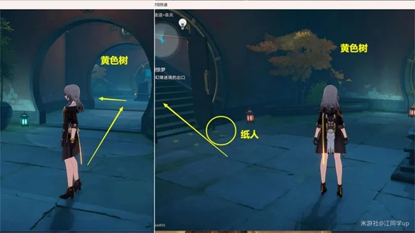 (5)上来后,再右边走到【黄色树】位置后,再左边楼梯上去,门口地上有【纸人】