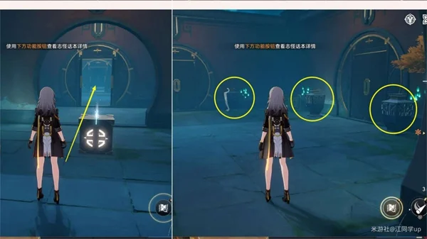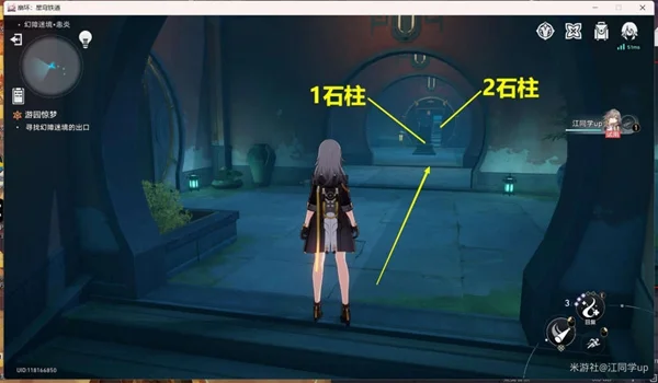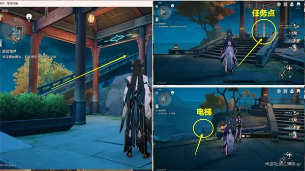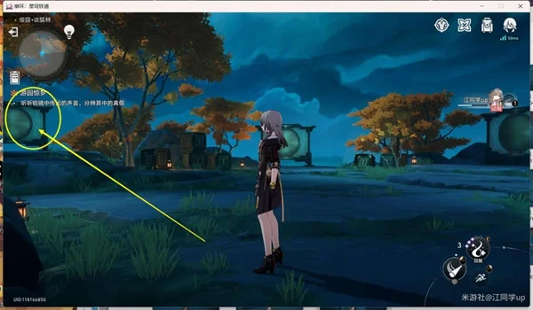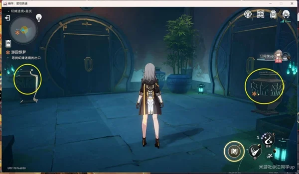 (3)跟着【藿藿】来到下图1任务点后,再按照路线去2任务点,然后【调查】2任务点【镜子】后,会进入后面的迷宫副本