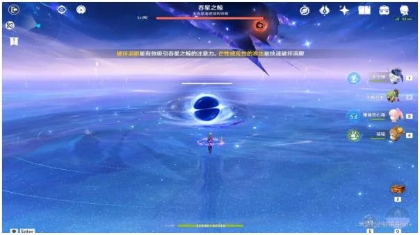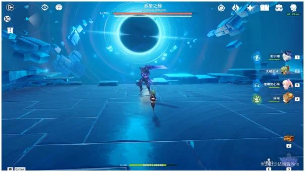 (2)进入后,使用普攻打BOSS,将敌意值打满(注意,BOSS血量低于1/3就不会吞人了,所以尽量别用技能)