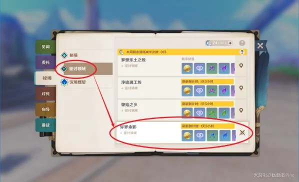 (1)我们打开【冒险指南】,选择秘境-征讨领域-异界余影,就能快速进入挑战
