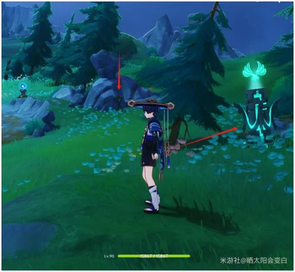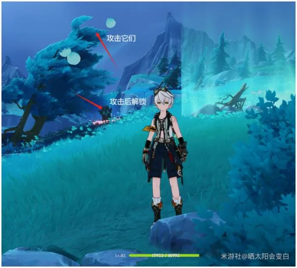 有一处需要先攻击树上的史莱姆气球才能解锁下面的风元素方碑。