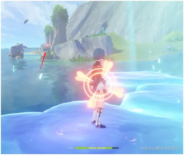 到标记处后,往海面看,会看到一个限时挑战的沙漏,过去交互开启挑战。