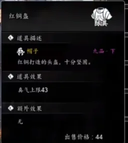 2、红铜盔:红铜打造的头盔,十分坚固,效果为真气上限为43。