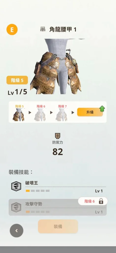 皮製头G2、火龙身G5、雌火龙手G4、角龙腰G5、搔鸟脚G2