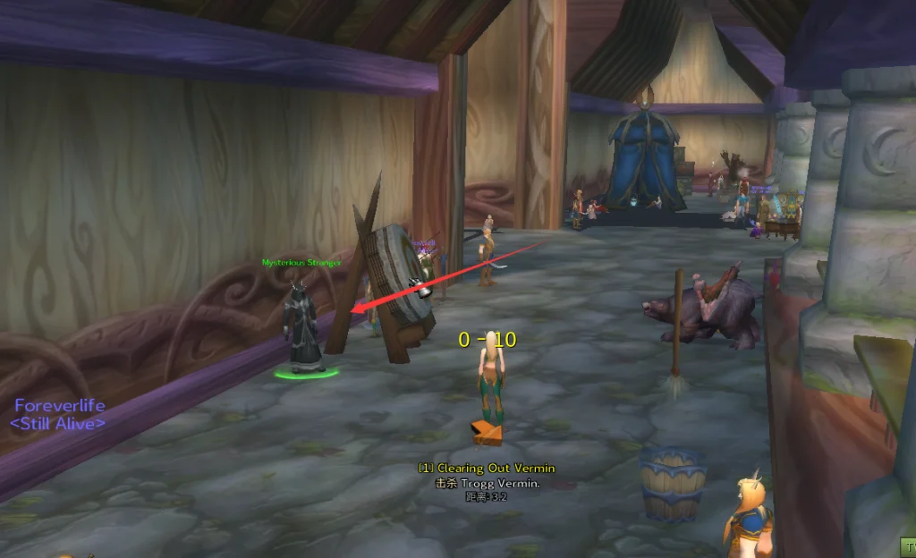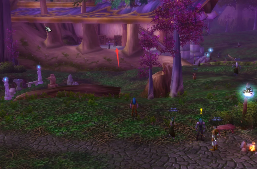 暗夜精灵硬核(hc)模式开启位于出生点旁边如图箭头所示位置