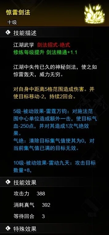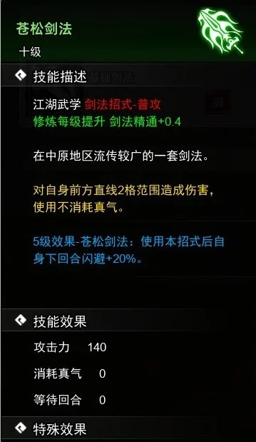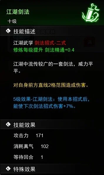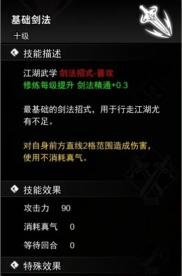 获取方法→①主角初始自带5级基础剑法