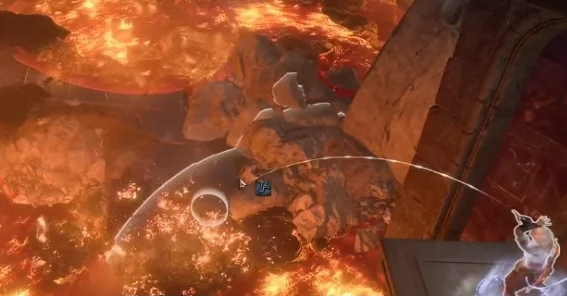 之后跟随箭头的指引是可以直接找到岩浆的位置,往前走到岩浆前面。