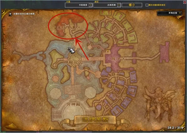 2、如果你是联盟的话,先在达纳苏斯的塞纳里奥区一楼的德鲁伊手中接取第一个任务。