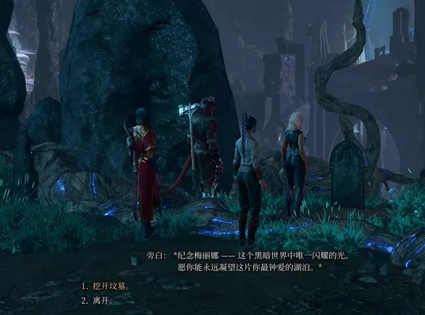 4、检定之后会有一段旁白,玩家可以得知这是梅里娜的墓碑,接着俩个选择选挖开坟墓,就可以得到了。