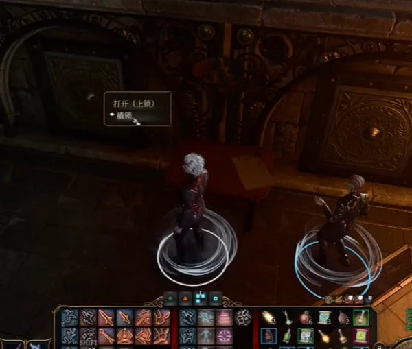 2、第一个方法很简单,因为博德之门3具有很高的开放要素,可以说玩家想到的几乎都可以做出来,碰见锁上的门当然也可以撬开,玩家可以使用能撬锁的角色直接把铁门撬开。