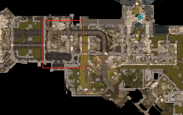 3、到达底城废墟后,到达地图这个位置,废弃蓄水池X:203Y:875处。