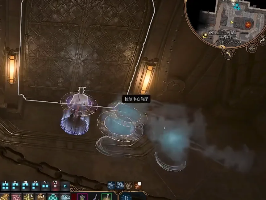 1、我们先来到下城区X:-241Y:-128这个位置使用法术御风而行,直接来到铸造厂内部。